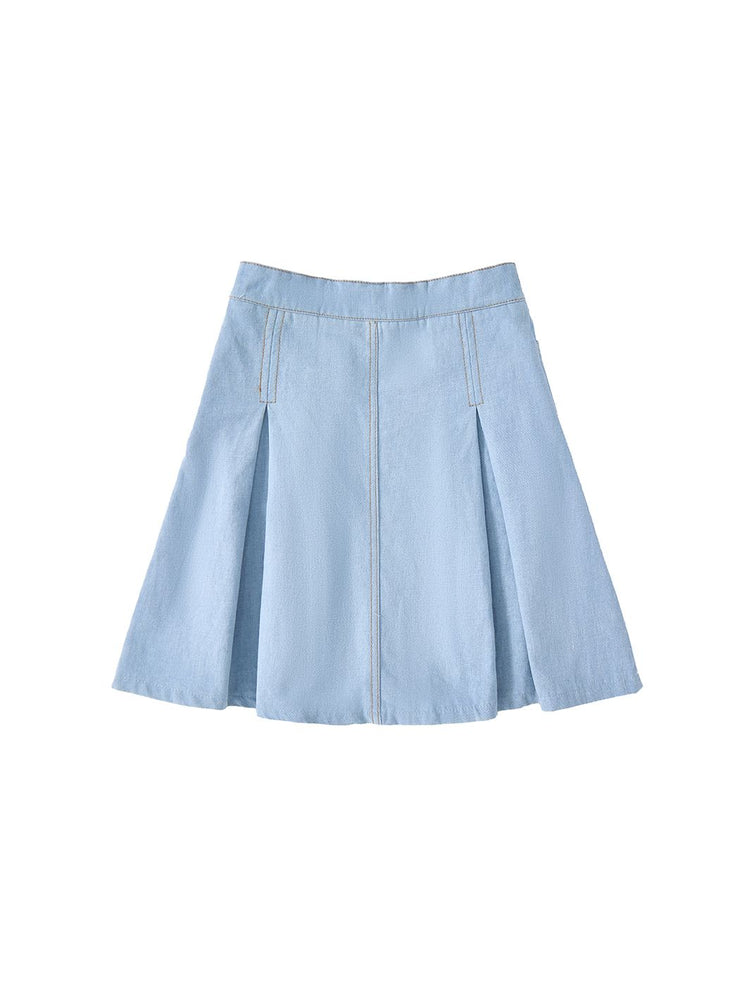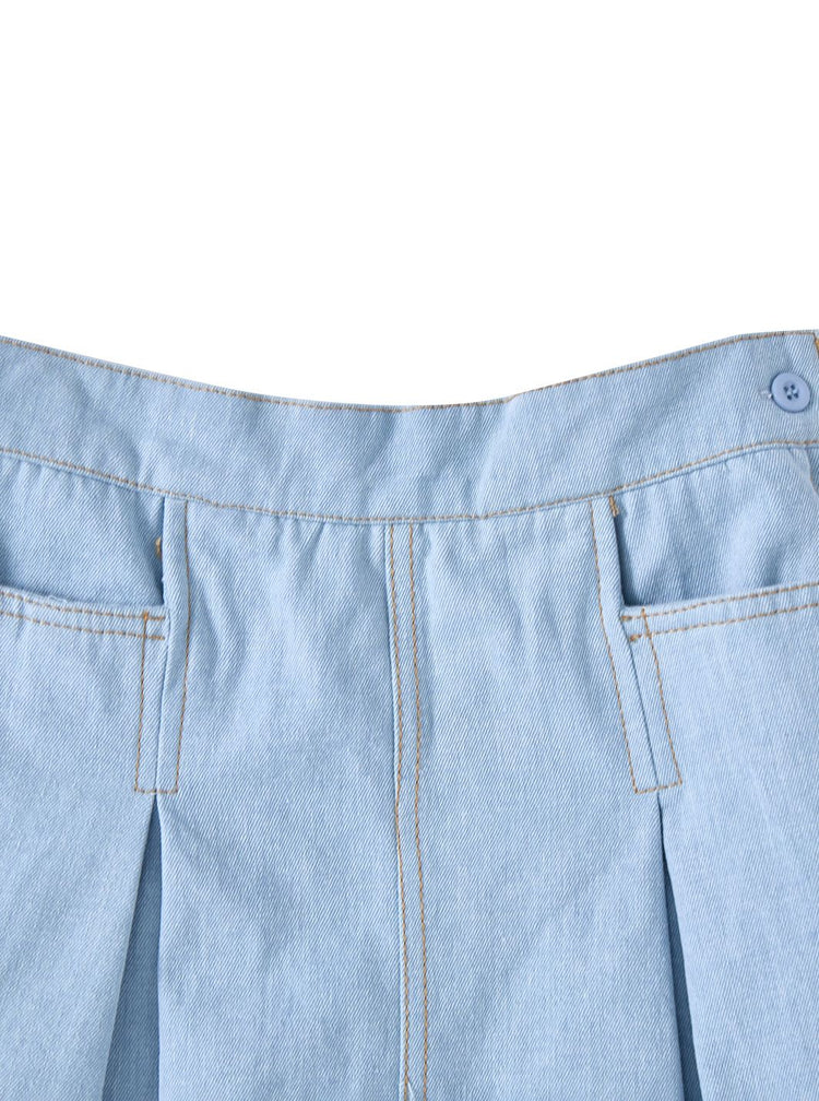 1 Pc. Denim Box Pleat Skirt - Pale Blue