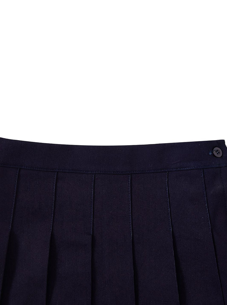 Denim Pleated Skirt - Navy