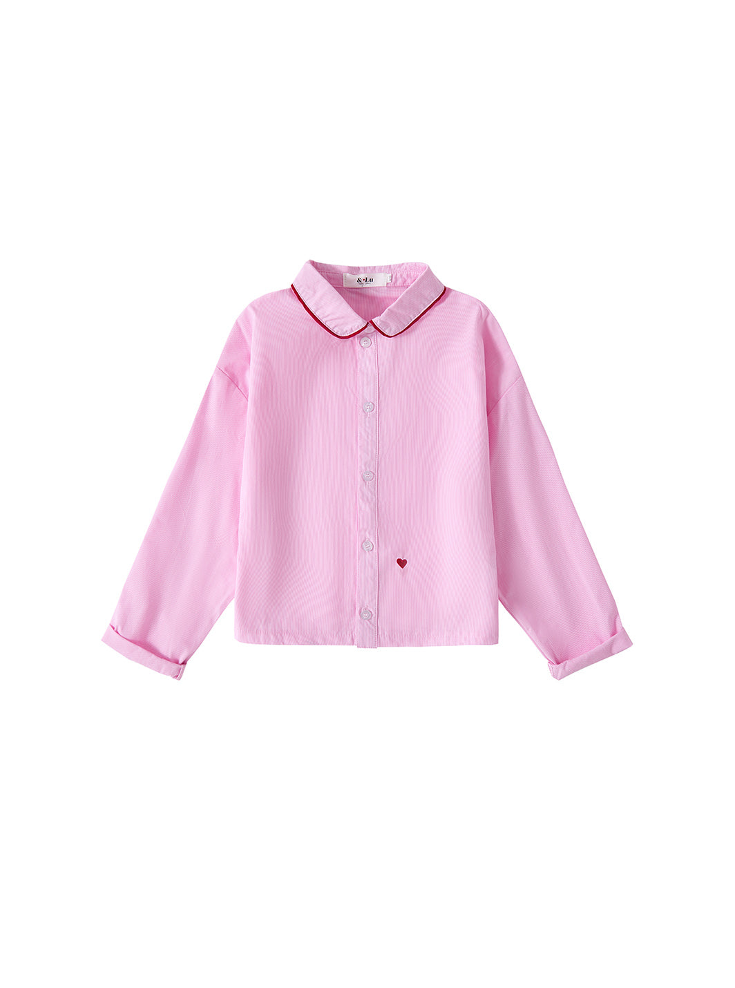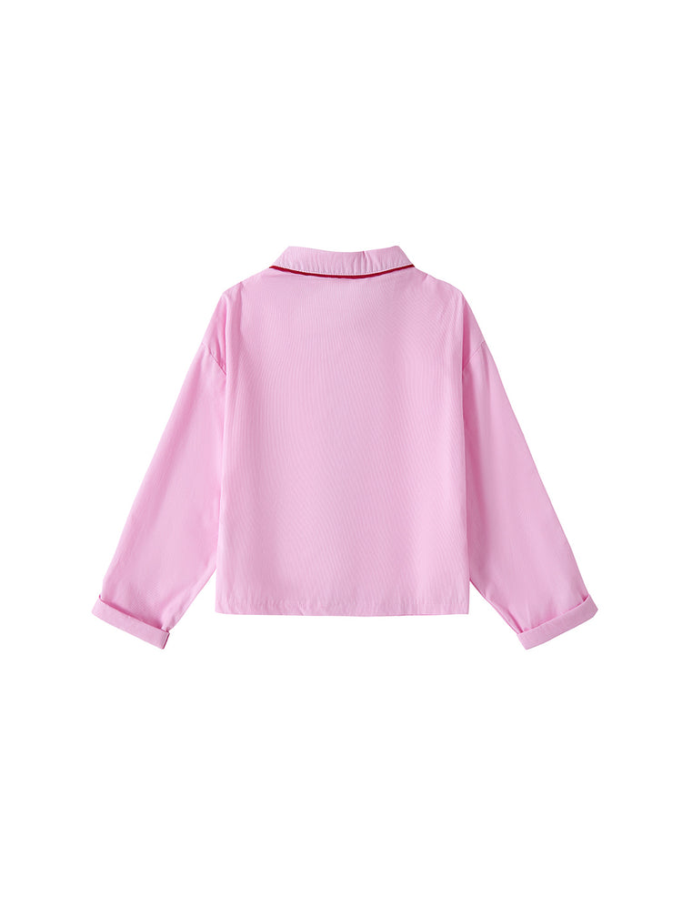 1 Pc. Piping Heart Crop Shirt - Pink/Red