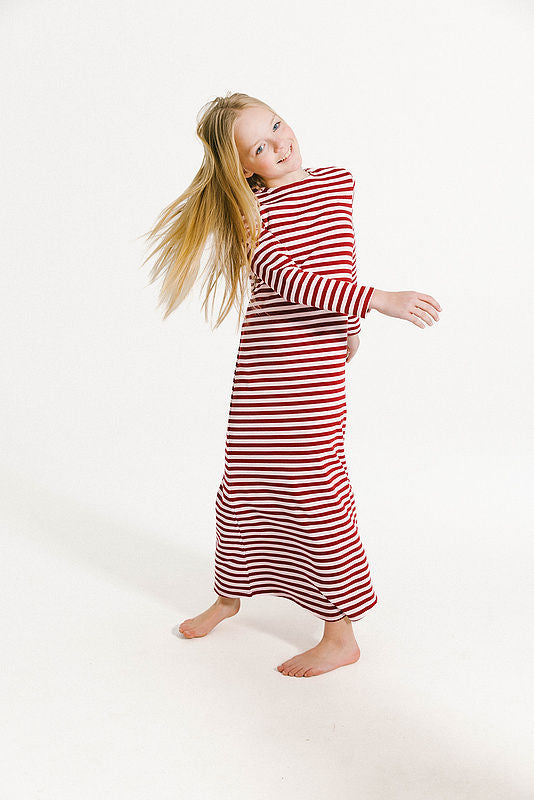 Striped Nightgown - Burgandy/Pink