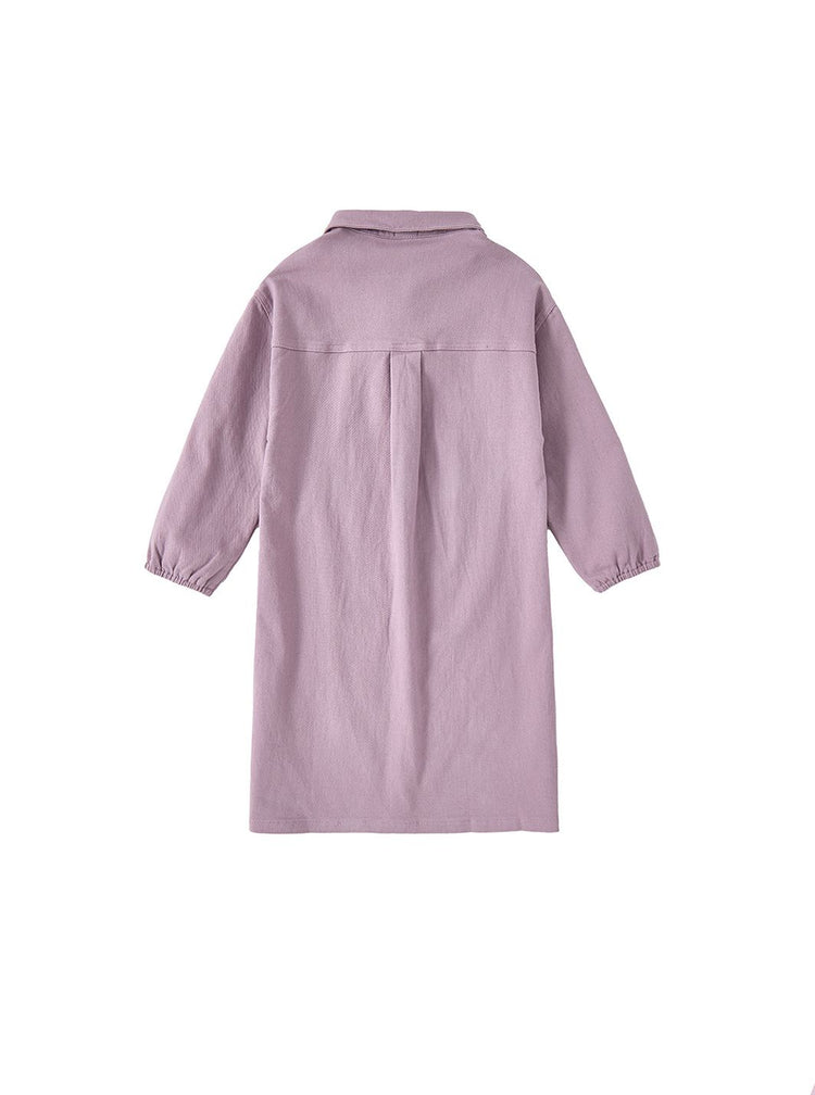 1 Pc. Twill Solid Shirt Style Dress - Pale Purple