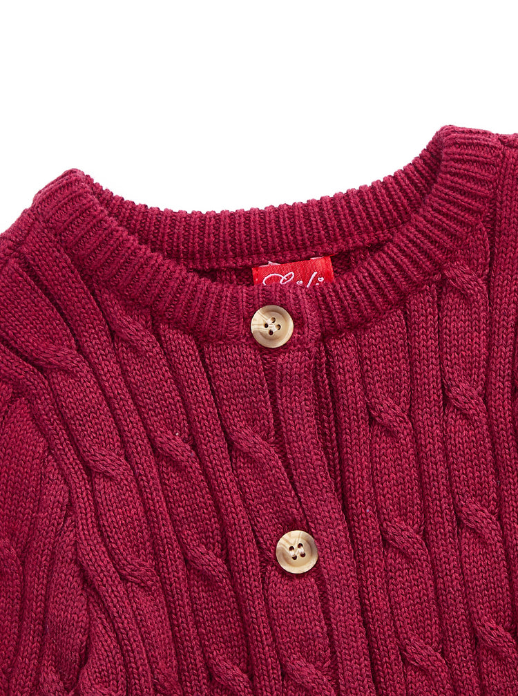 1 Pc. Cable Knit Cardigan - Burnt Red