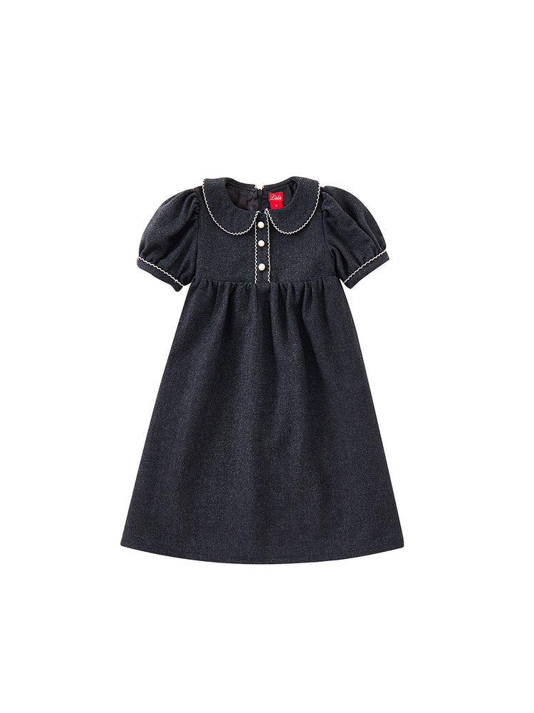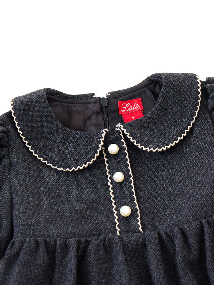 1 Pc. Collar Trim Dress - Charcoal
