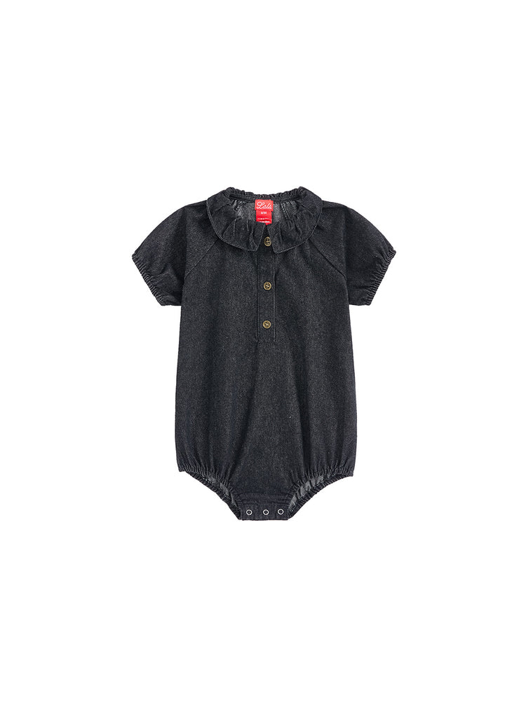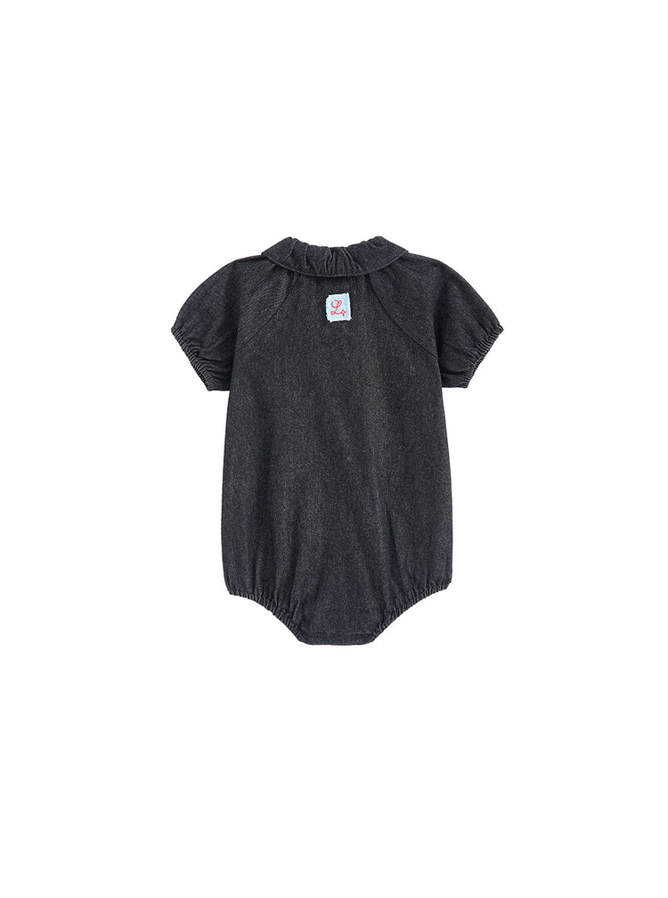 Baby Denim Trim Romper - Black Denim