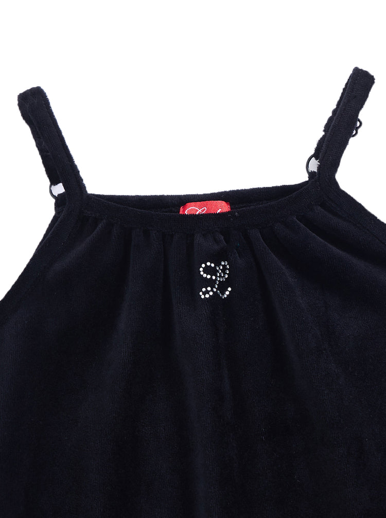 1 Pc. Baby Velour Studded Strap Overall - Black