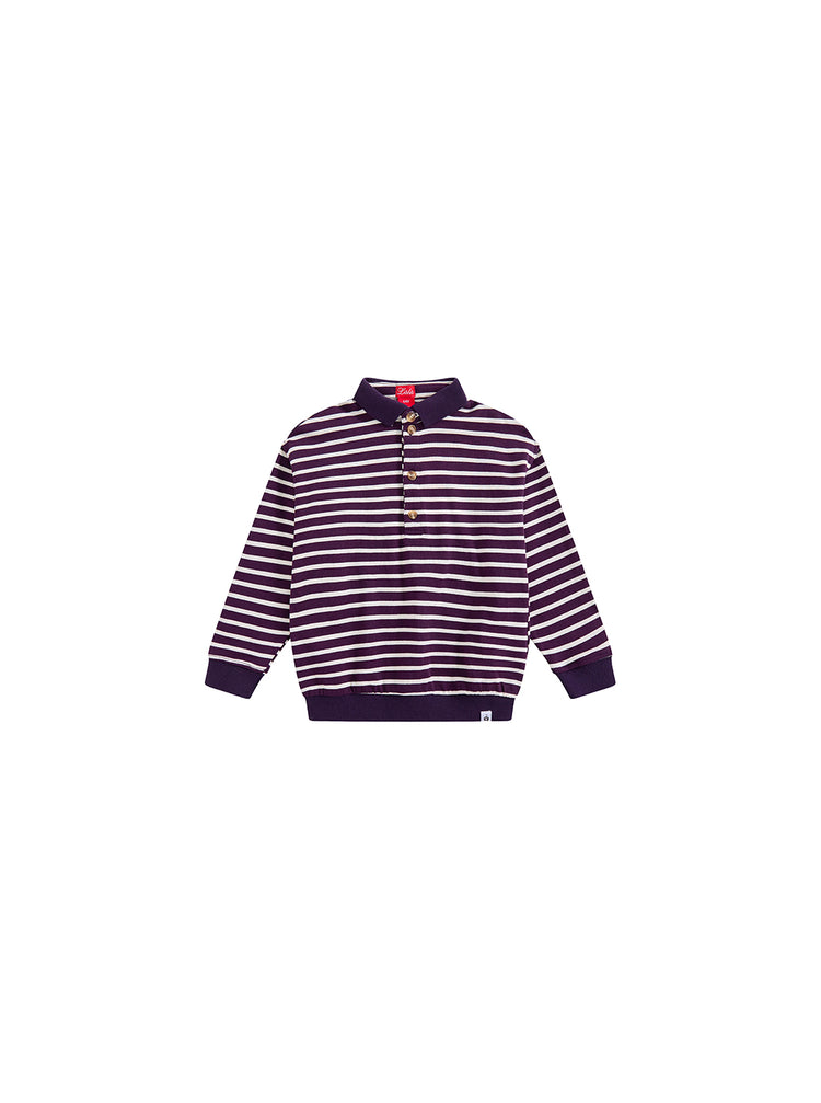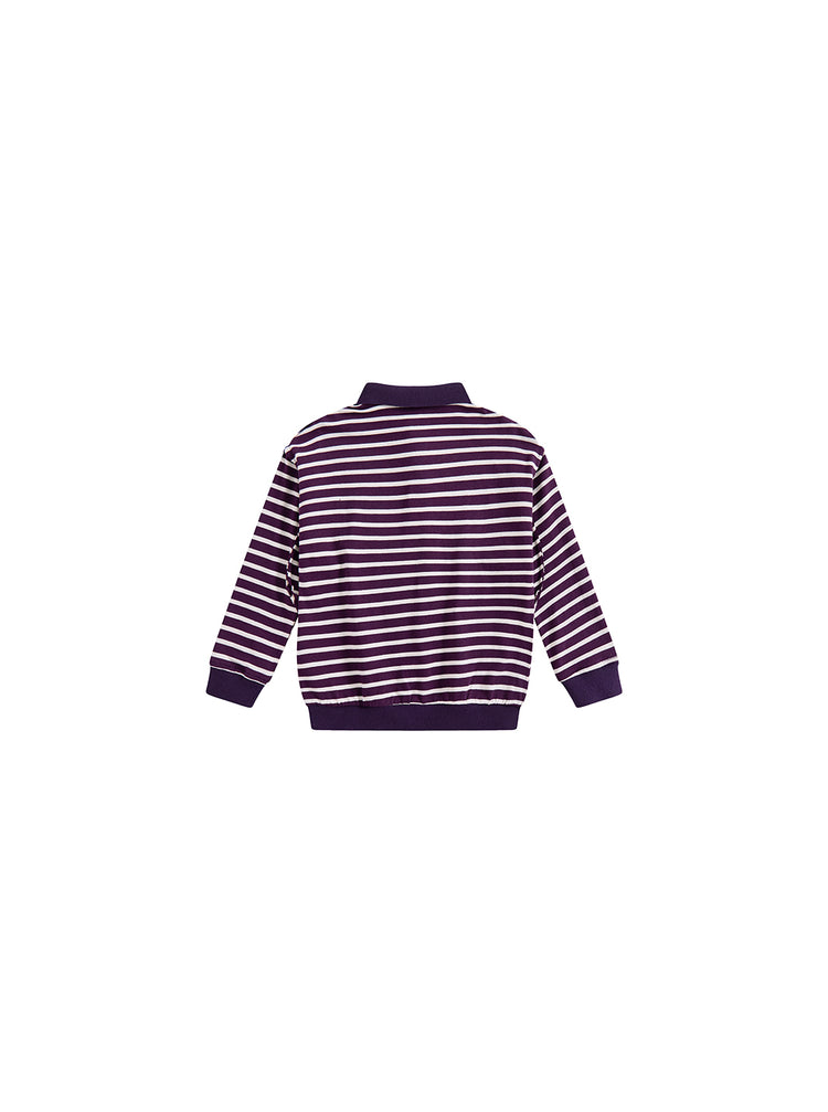1 Pc. Classic Striped Collar Polo - Plum/White