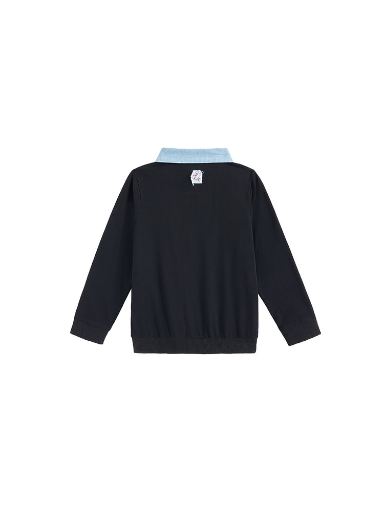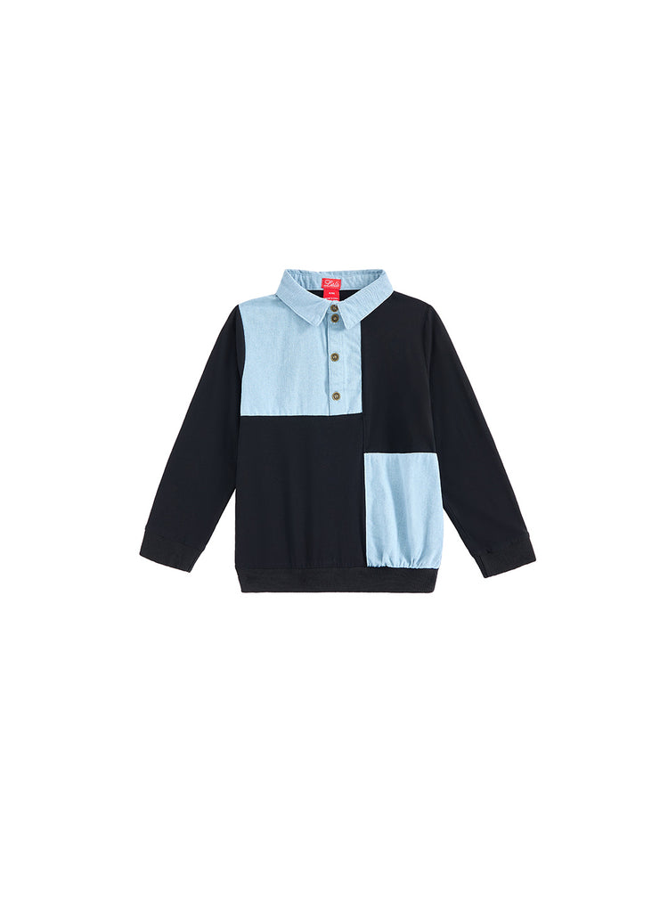 1 Pc. Color Block Trim Polo - Pale Blue Denim