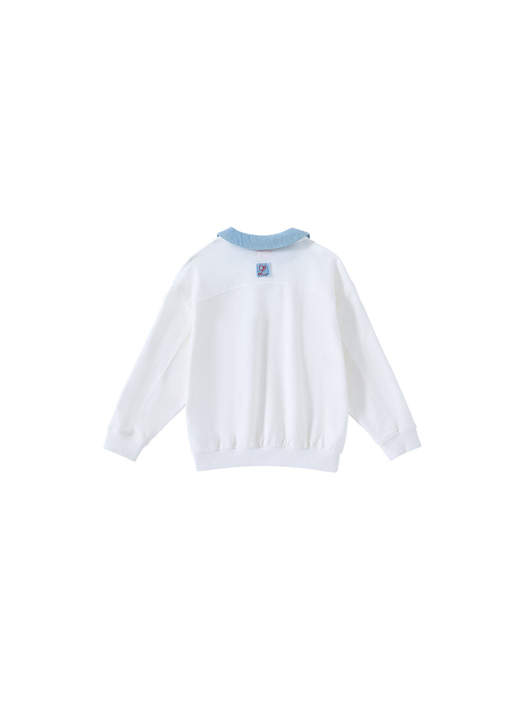 Detachable Denim Collar Top - White/Pale Denim Blue