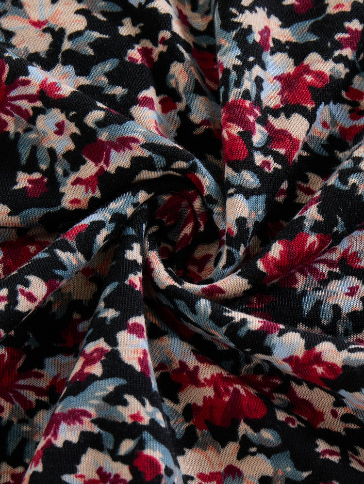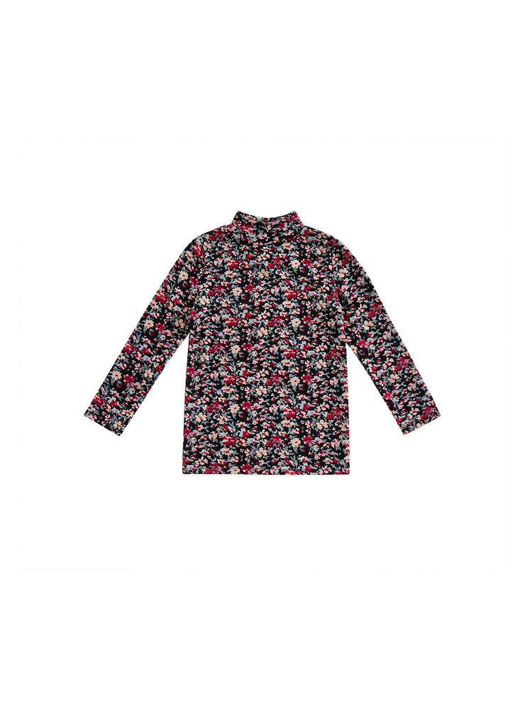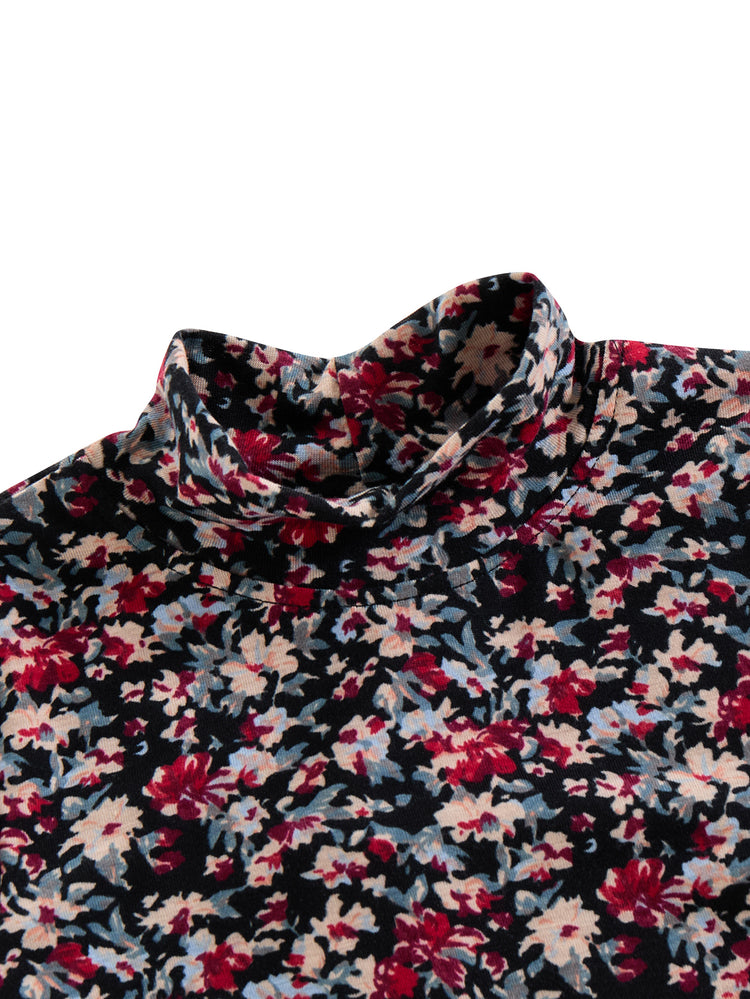 1 Pc. Floral Mock Neck T-shirt - Black/Red