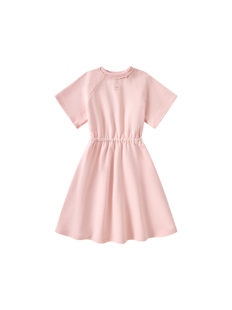 1 Pc. French Terry Short Sleeve Dress - Peach