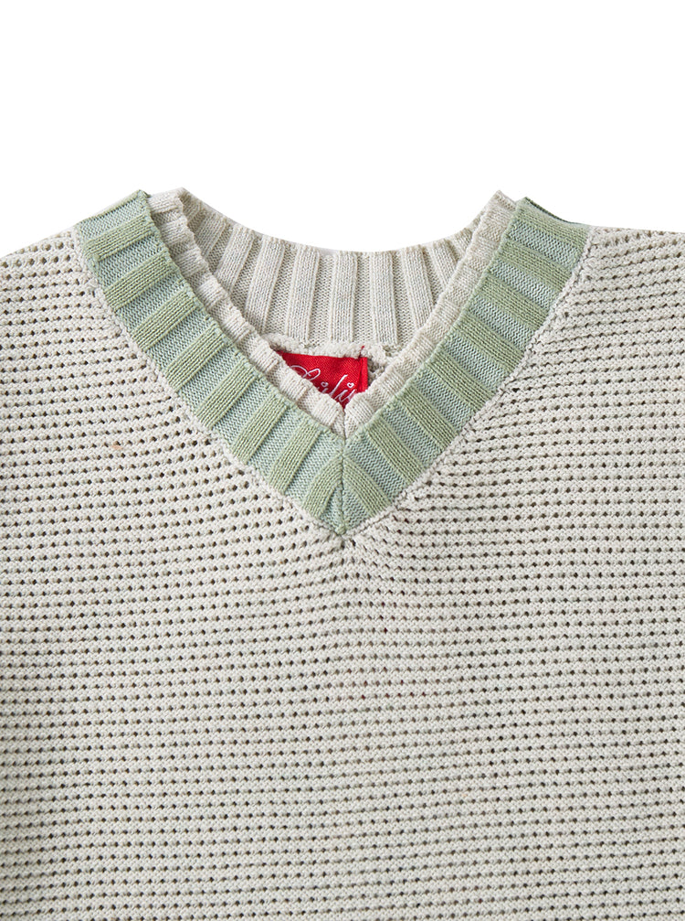 1 Pc. Grid Short Sleeve Sweater - Mint Green
