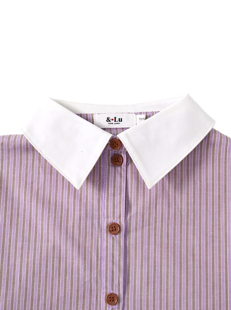 1 Pc. High Low Shirt - Purple/Beige