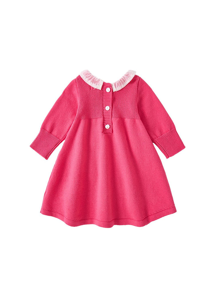 1 Pc. Knit Ruffle Dress - Neon Hot Pink