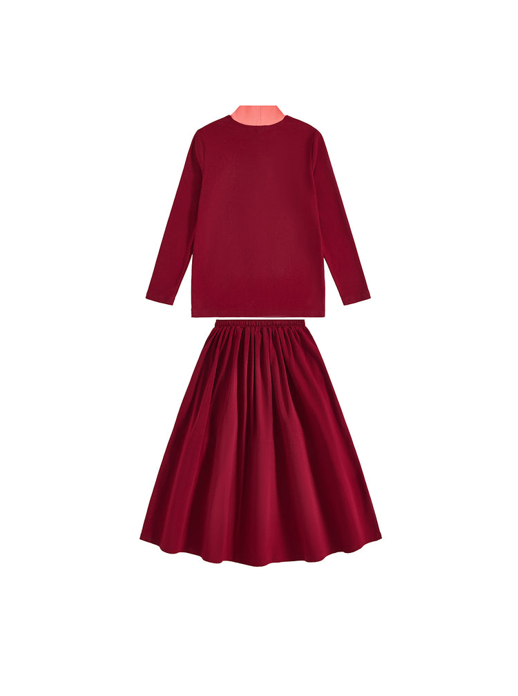 2 Pc. Mock Neck Tea Length Set - Burgundy