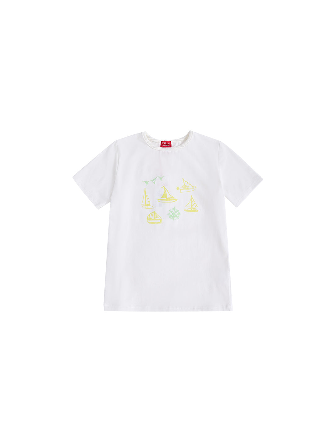 1 Pc. Nautical Print Short Sleeve T-Shirt - White