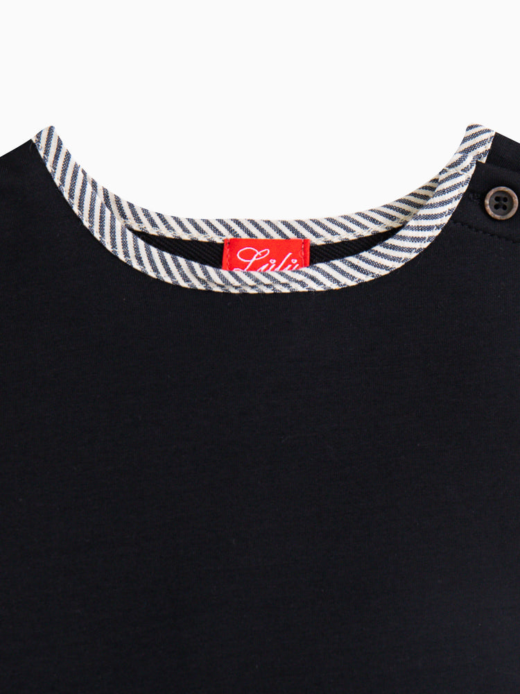 1 Pc. Thick Striped Sleeve Top - Black/off white
