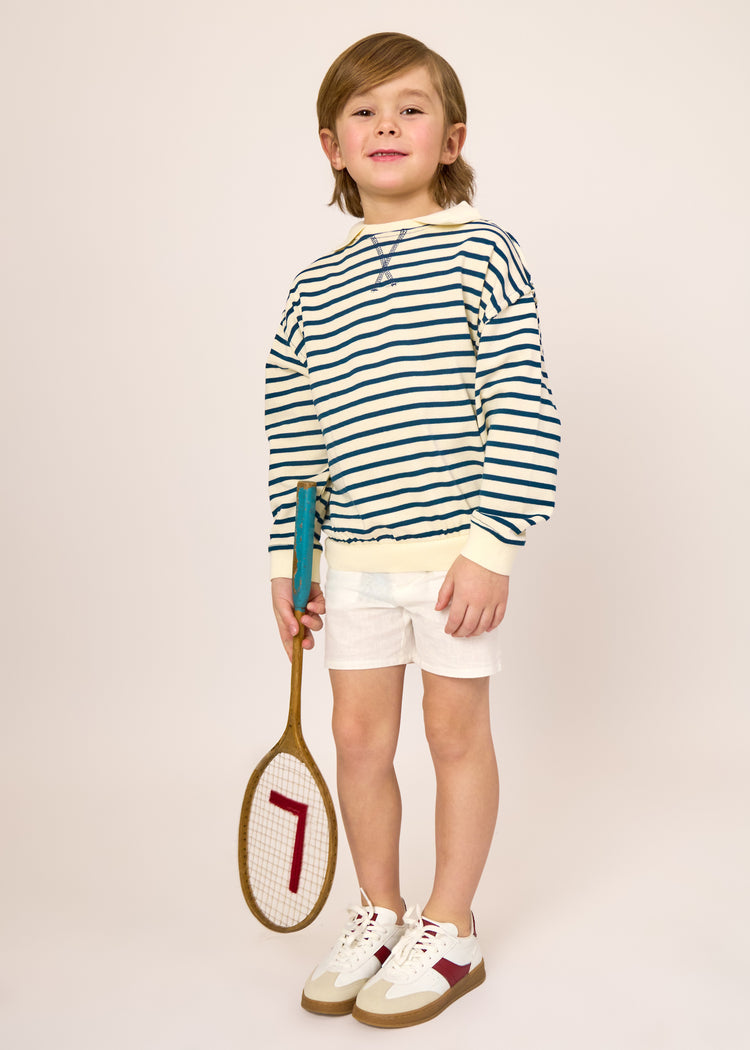 1 Pc. Classic Stripe Polo - Steel/White