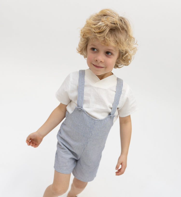 1 PC אוברול פסים פשתן לתינוק - כחול