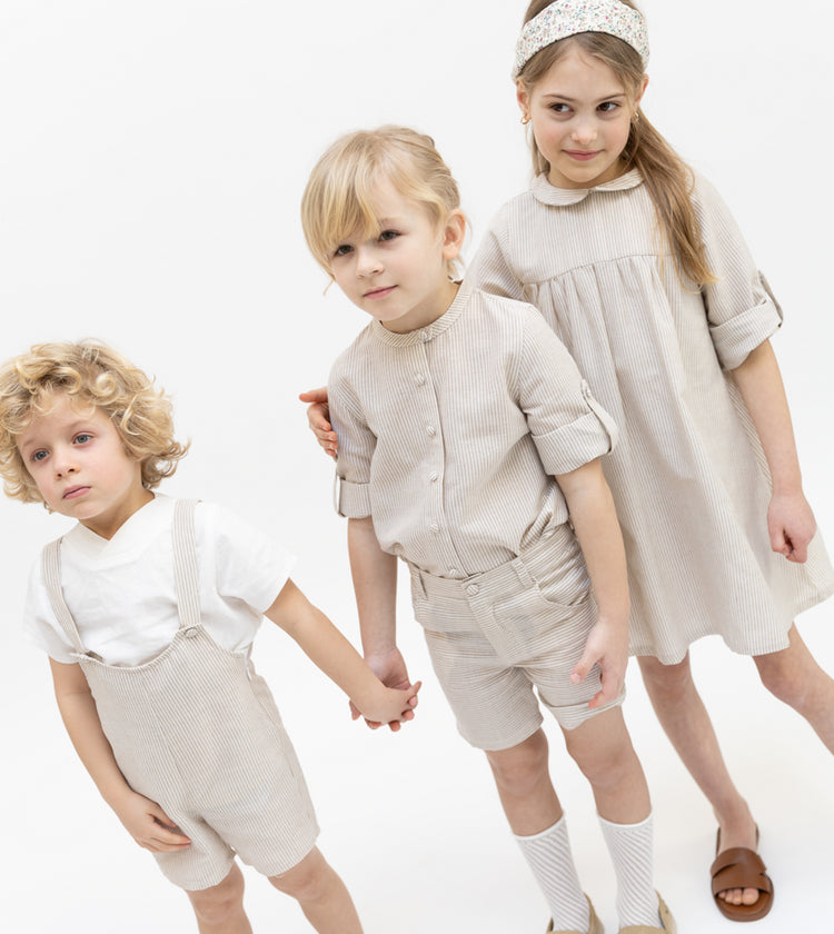 1 PC אוברול פסים פשתן לתינוק - בז'