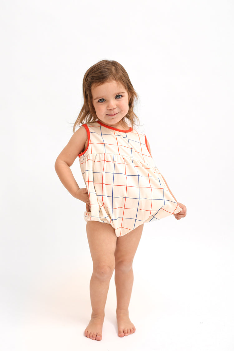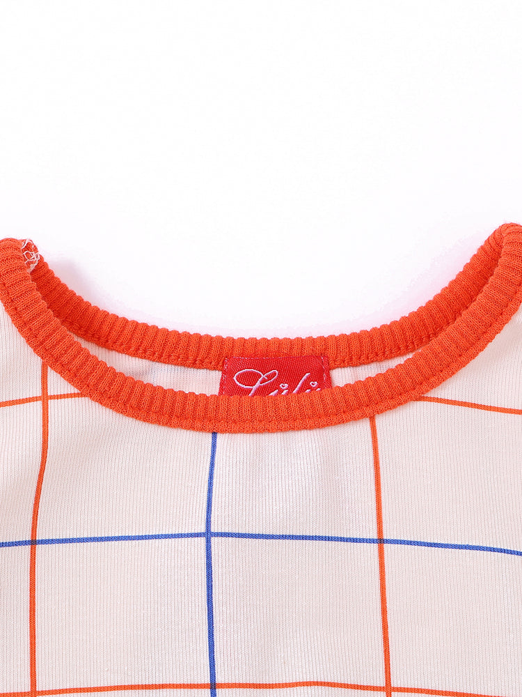 1 PC Baby Square Print Romper - אוף ווייט/כתום