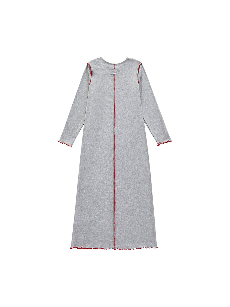 1 Pc. Bottom merrow edge Nightgown - Grey Mix