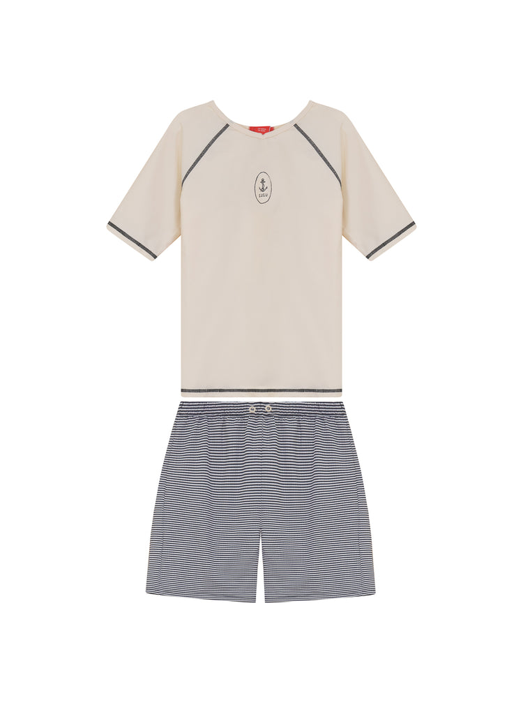 2 Pc. Boy Seersucker Stripe Swim Set - Black Stripe
