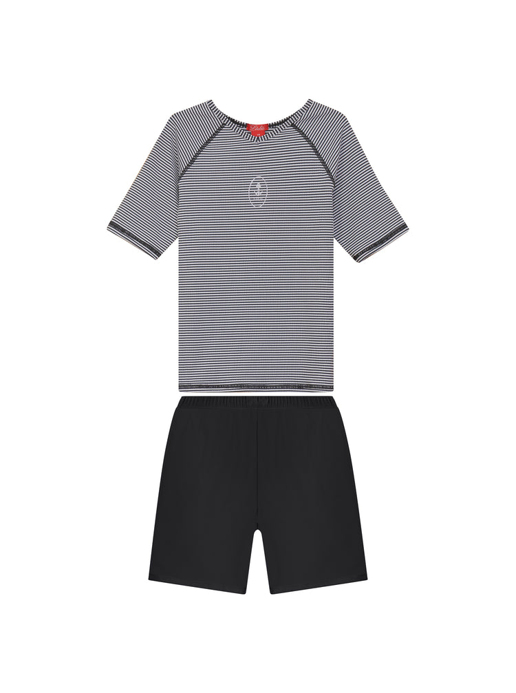 2 Pc. Boy Seersucker Striped Swim Set - Black Stripe