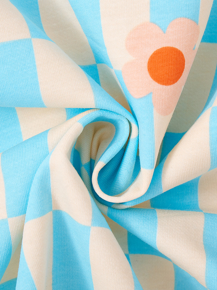 1 PC דף פרחים משובץ - לבן