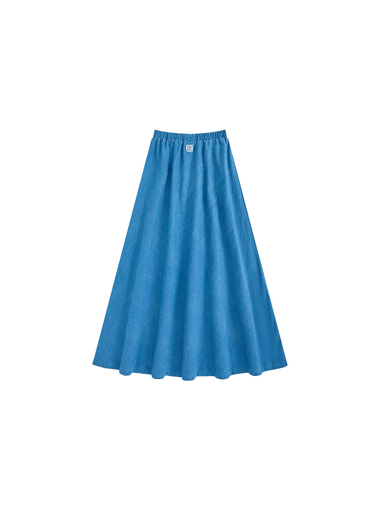 1 Pc. Denim Patch Midi Skirt - Blue Denim