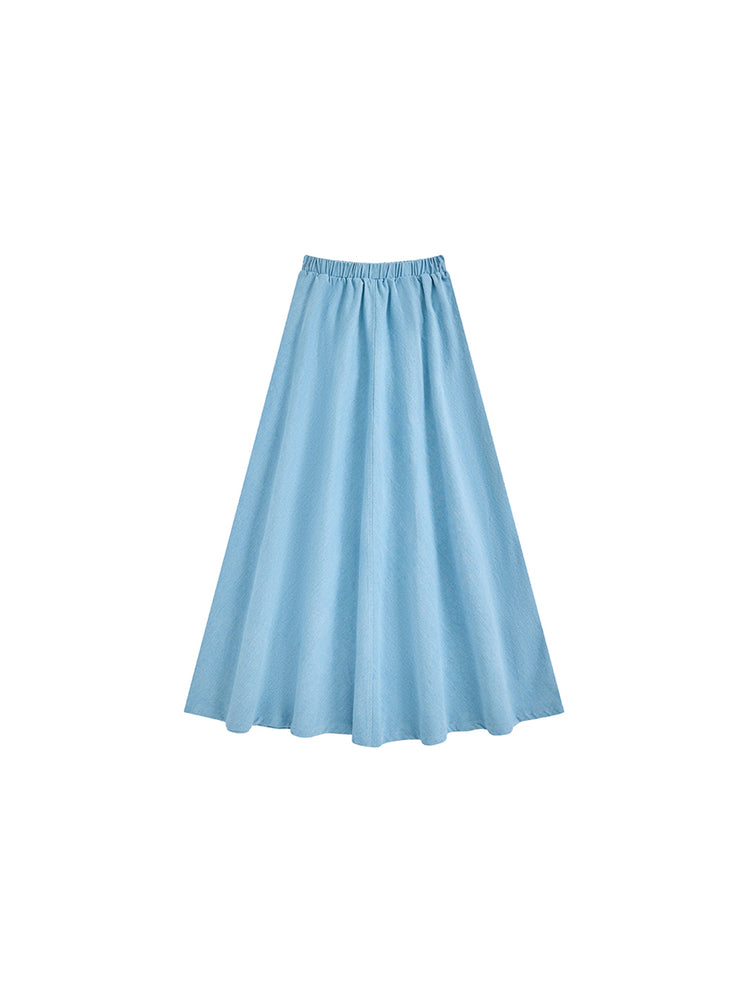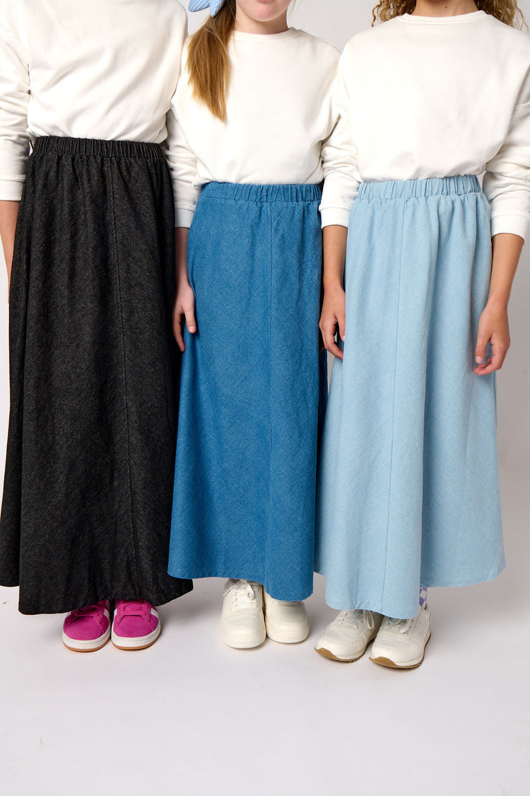 1 Pc. Denim Patch Midi Skirt - Pale Blue Denim