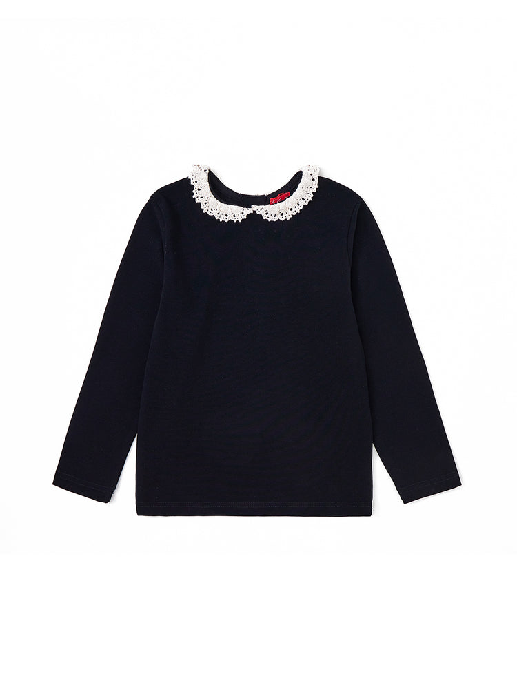 1 PC חולצת טריקו צווארון תחרה - שחורה