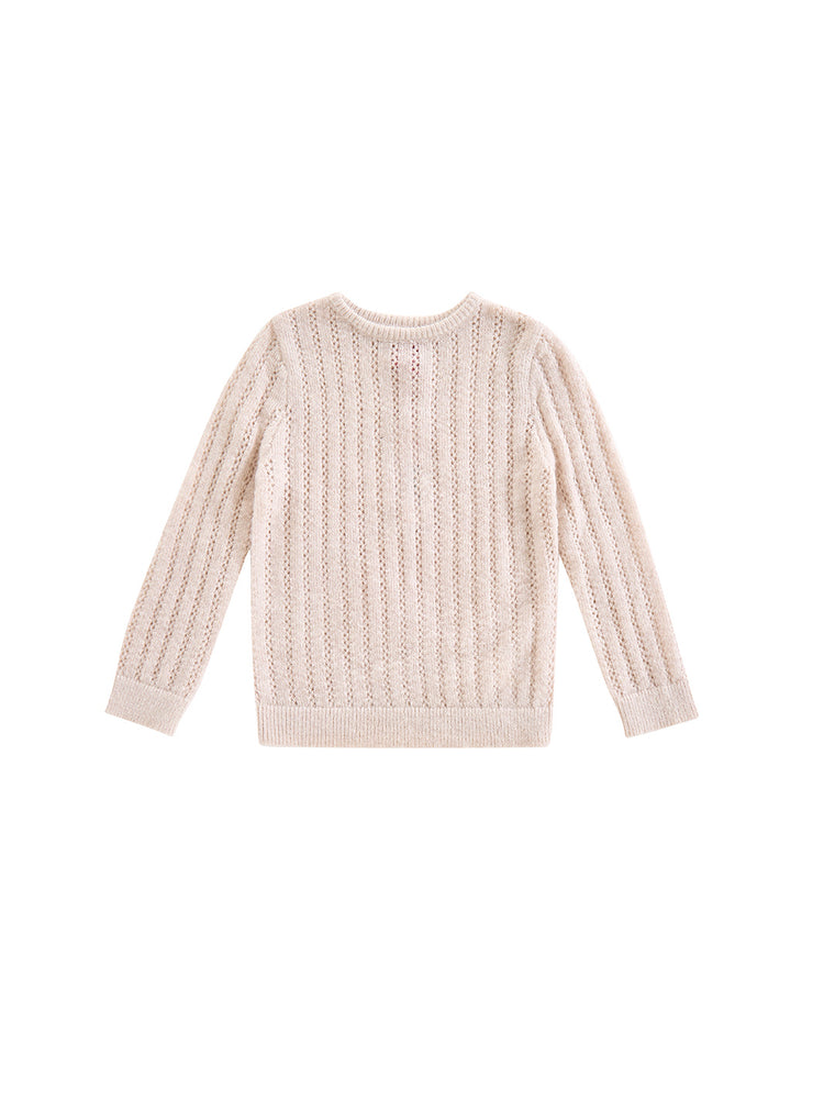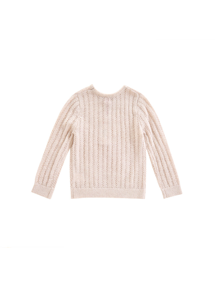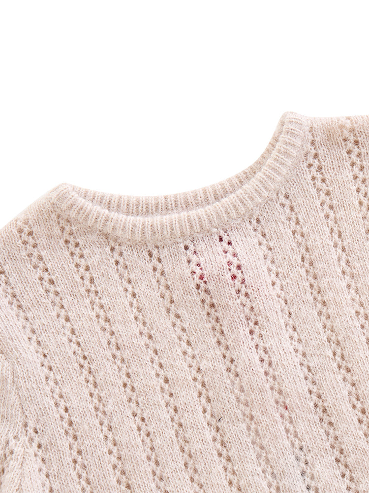 1 Pc. Striped Eyelet Sweater - Oatmeal