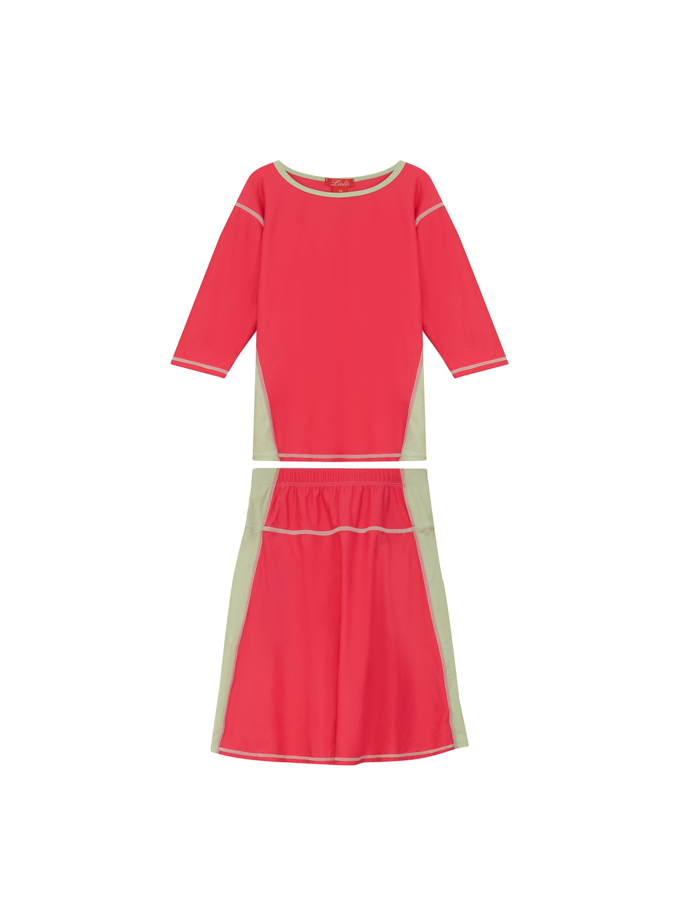 1 Pc. Girls Side Stripe Swim Set - Cherry