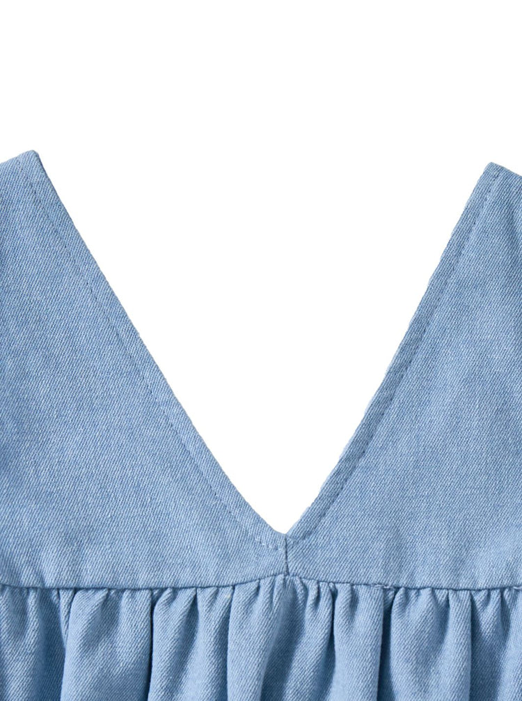 1 Pc. Denim V-neck Jumper - Pale Blue