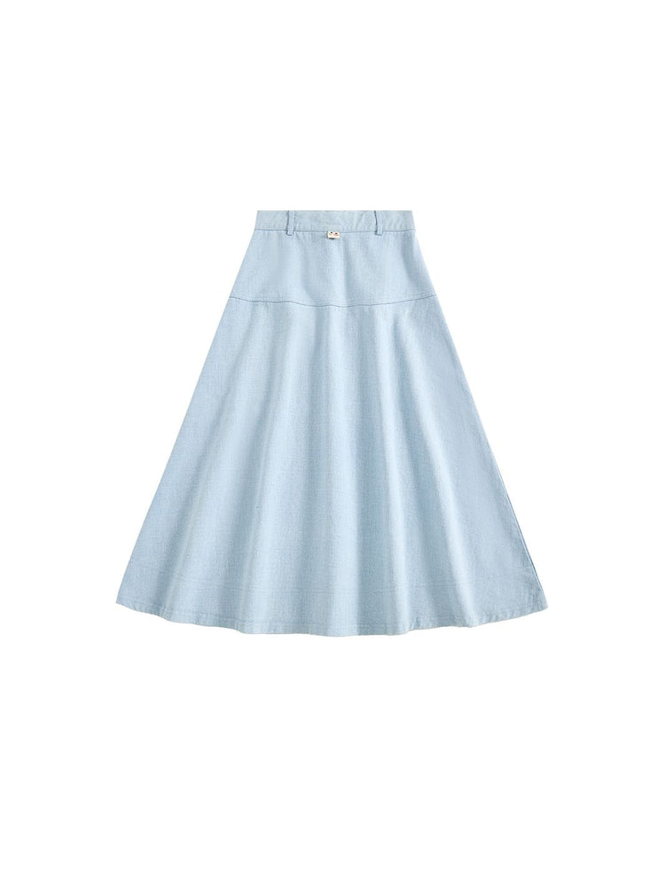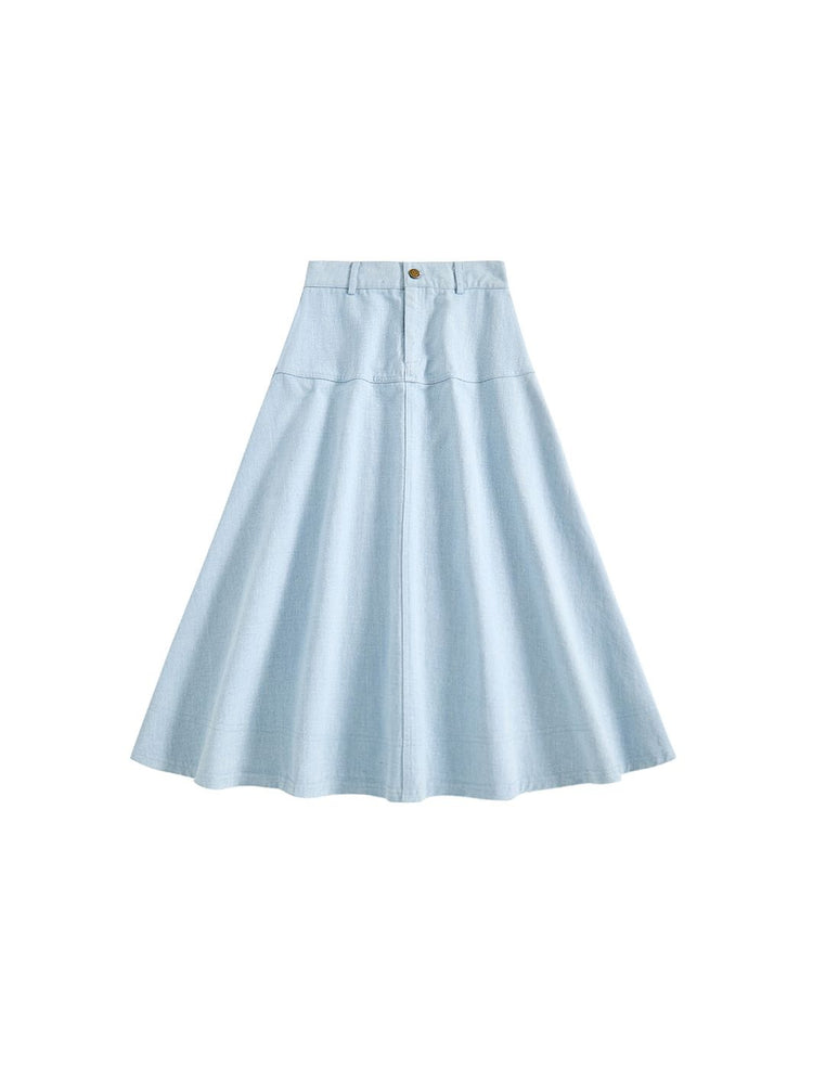 1 Pc. Denim Thick Tea Length Skirt - Pale Blue