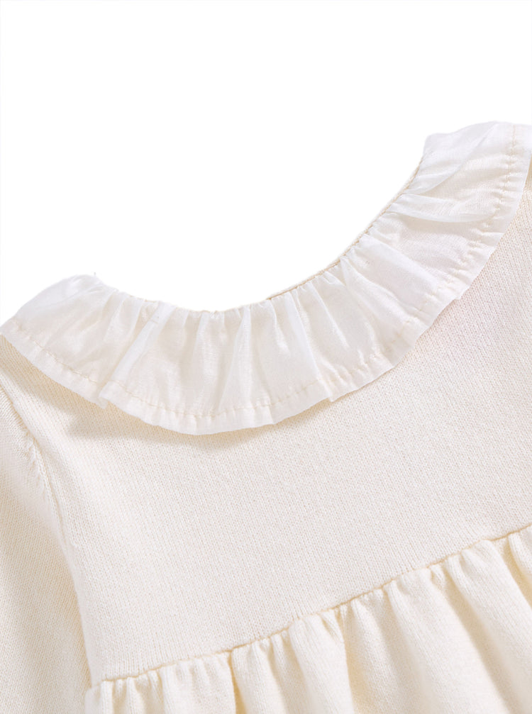 1 Pc. Baby Knit Ruffle Overall - Almond White