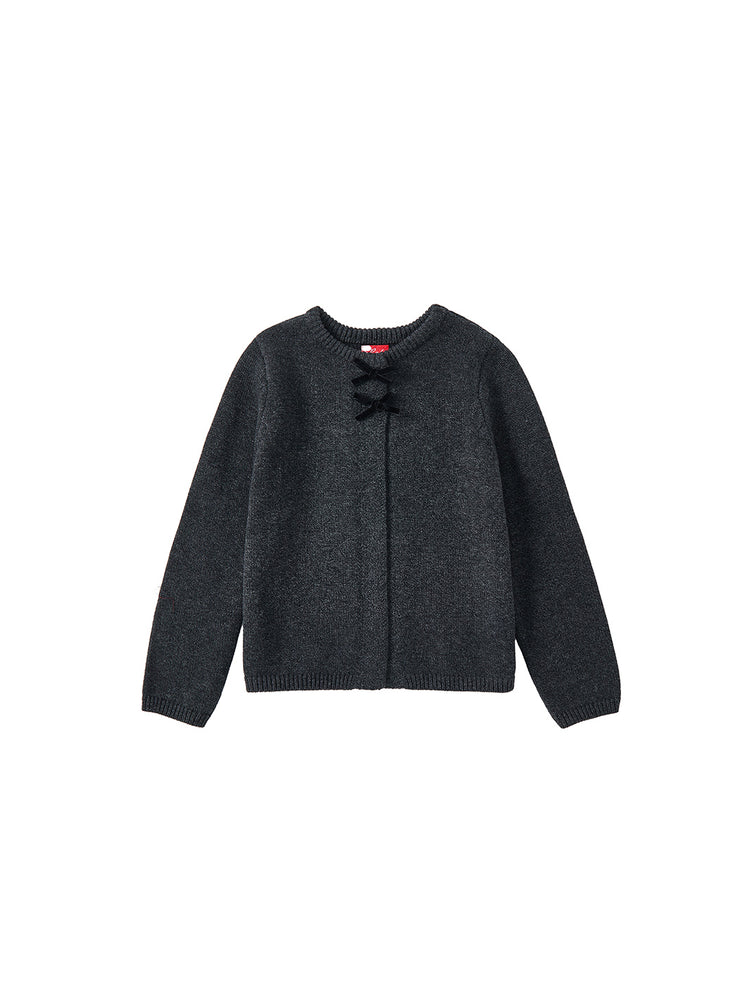 1 Pc. Cardigan Trim Bows Sweater - Charcoal Mélange