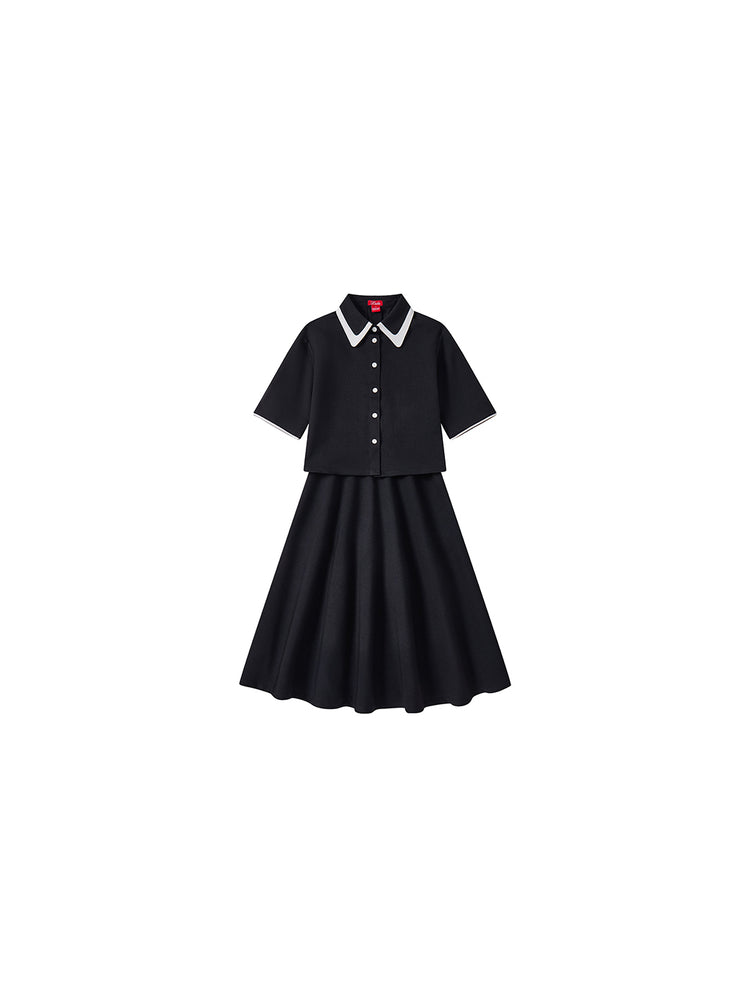 2 Pc. Collar Shirt / Skirt Set - Black
