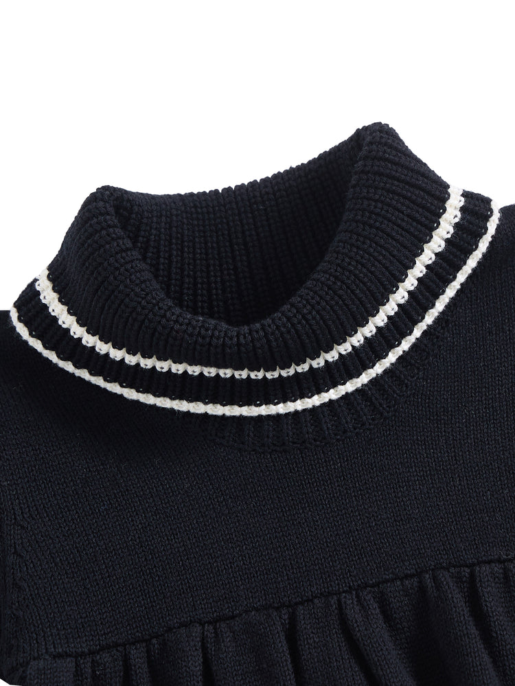 1 Pc. Knit Turtleneck Stripe Dress - Black