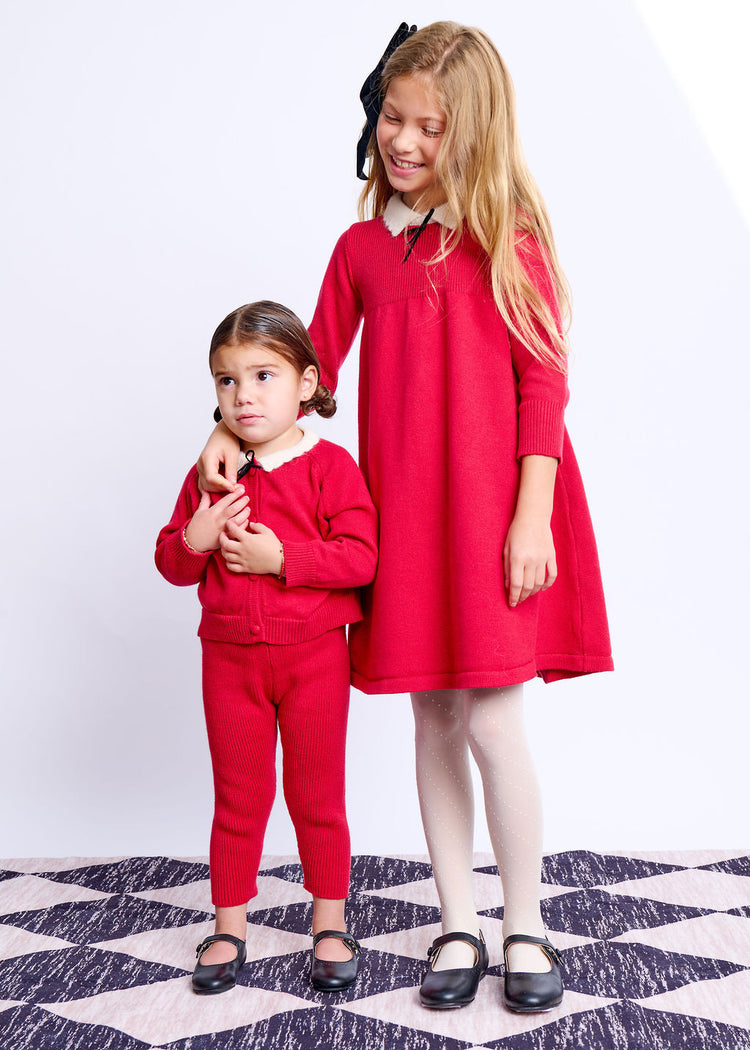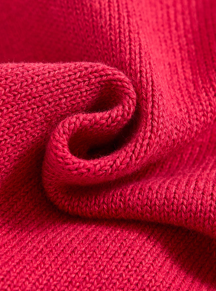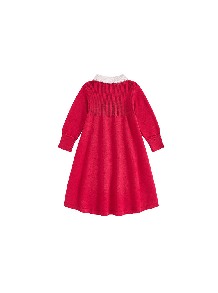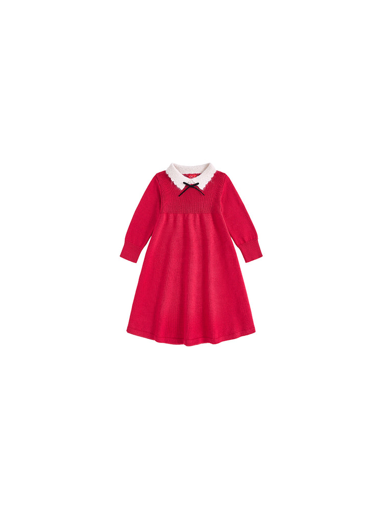 1 Pc. Knitted Scallop Mohair Collar Dress - Red Mix