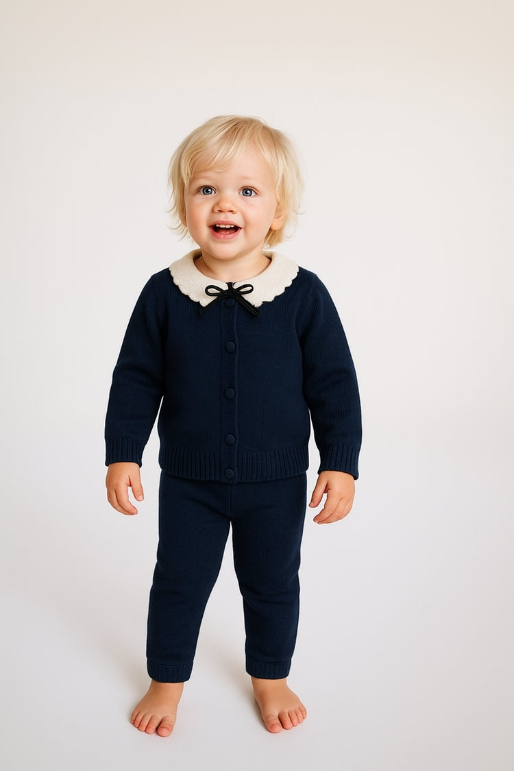 2 Pc. Knitted Scallop Mohair Collar Set - Navy
