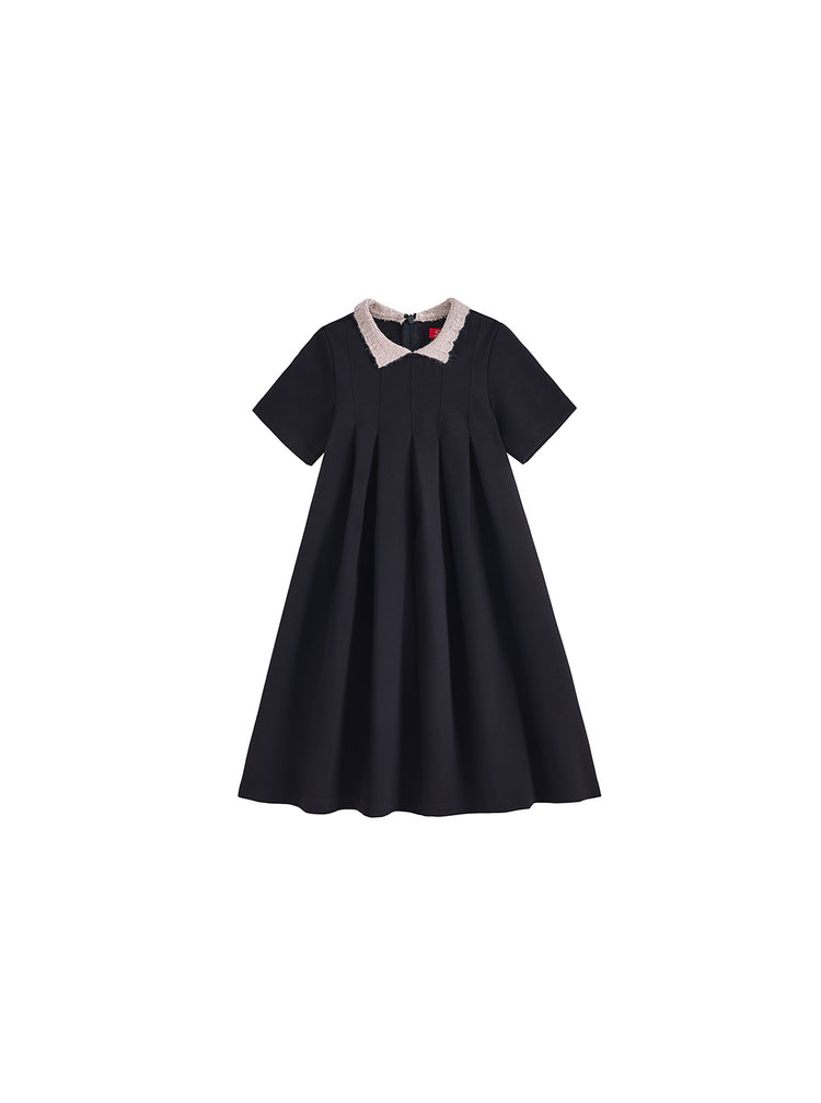 1 Pc. Mohair Collar Dress - Black