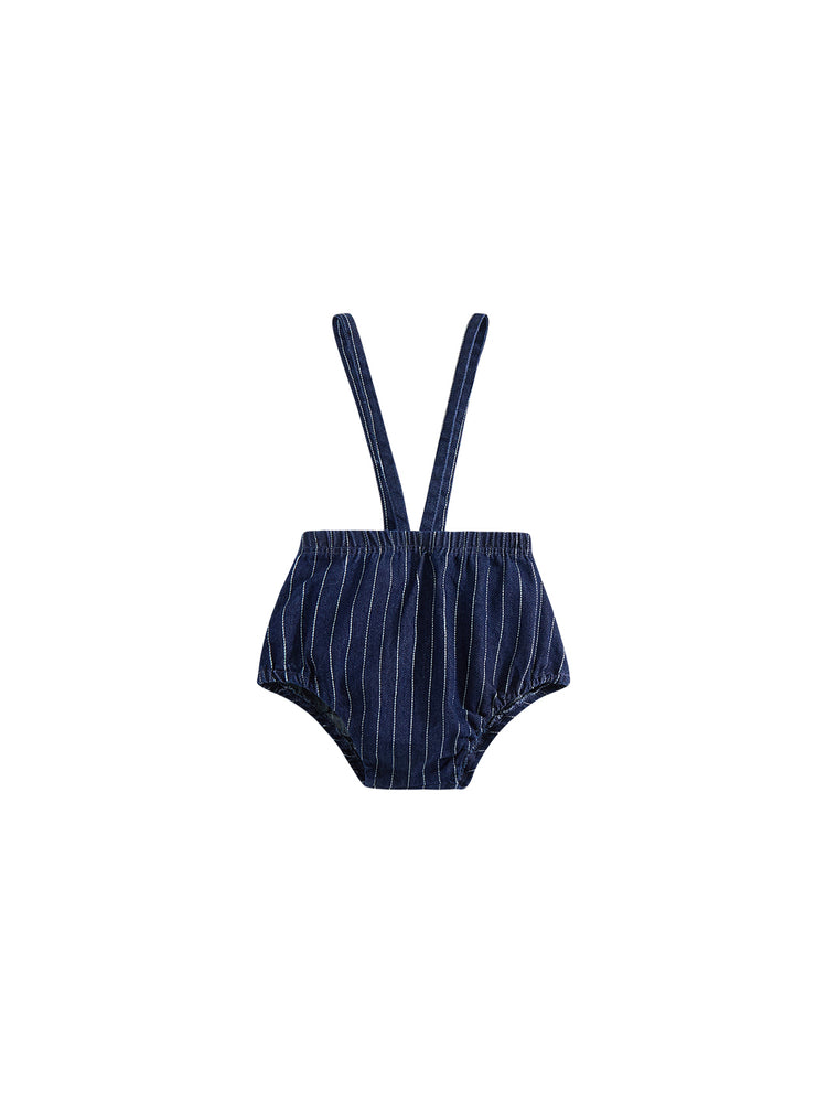 1 Pc.Denim Striped Romper - Navy
